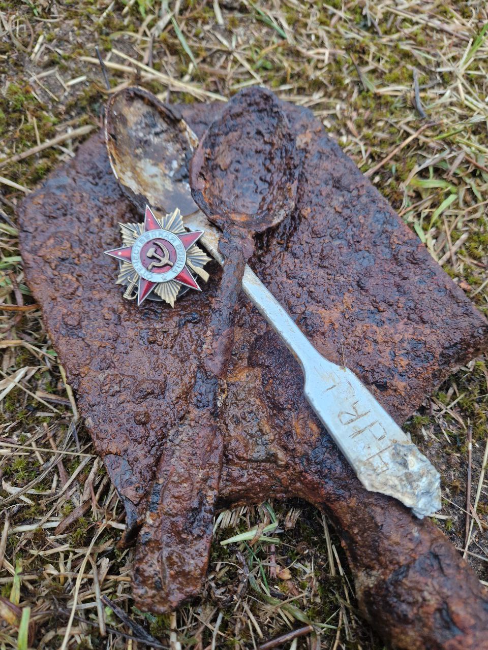 «Перед ним взорвалась мина... При нём была звёздочка, ремни и кошелёк, их раньше называли гомонок. В нём лежала булавка, несколько монет и какие-то бумаги, которые не сохранились. Таких называли «Ванька ротный», они поднимали бойцов в атаку».