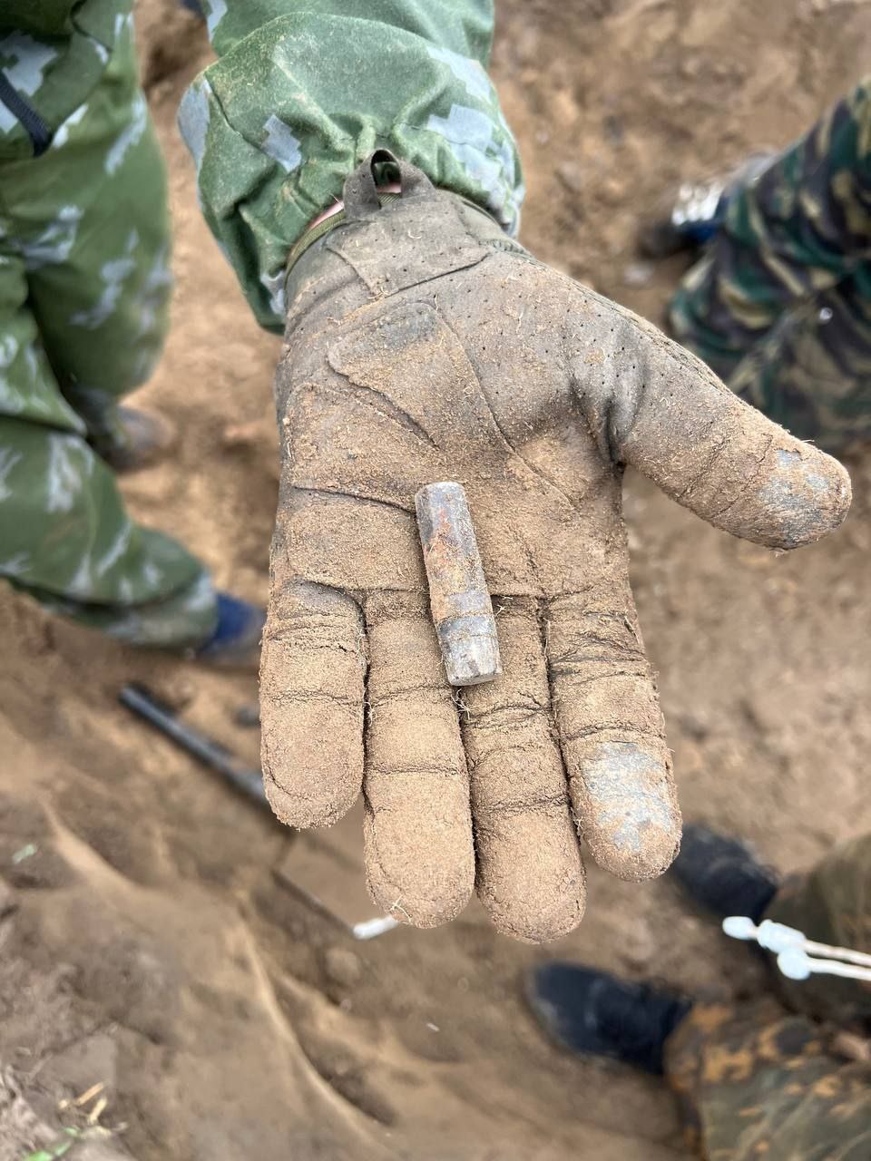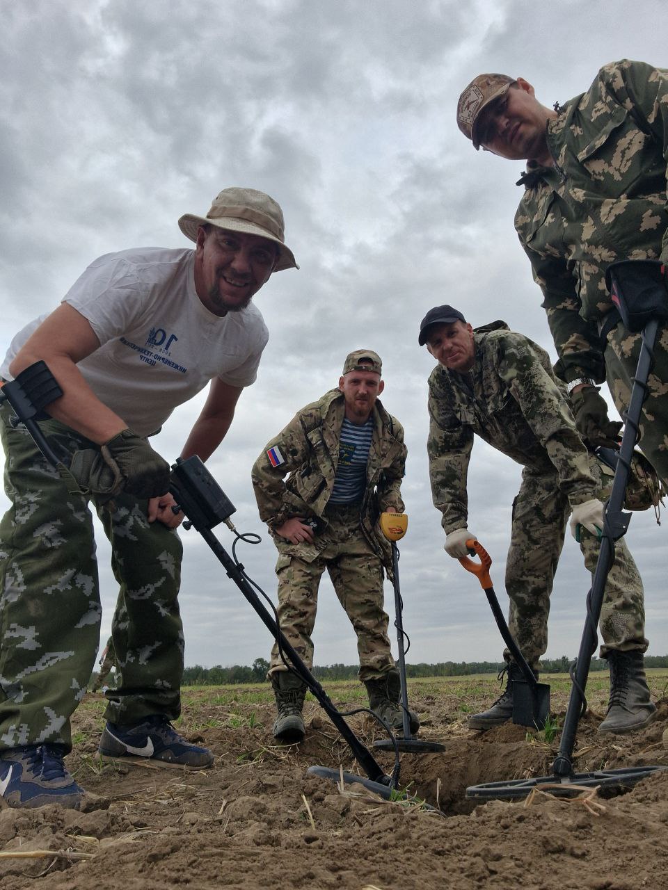 Главная цель — найти и с почестями похоронить павших бойцов. Работа строится так: сначала оператор с глубинным металлоискателем находит аномалии и ставит флажки. Потом группа прочёсывает точки обычными приборами и щупами — заточенными прутами арматуры.