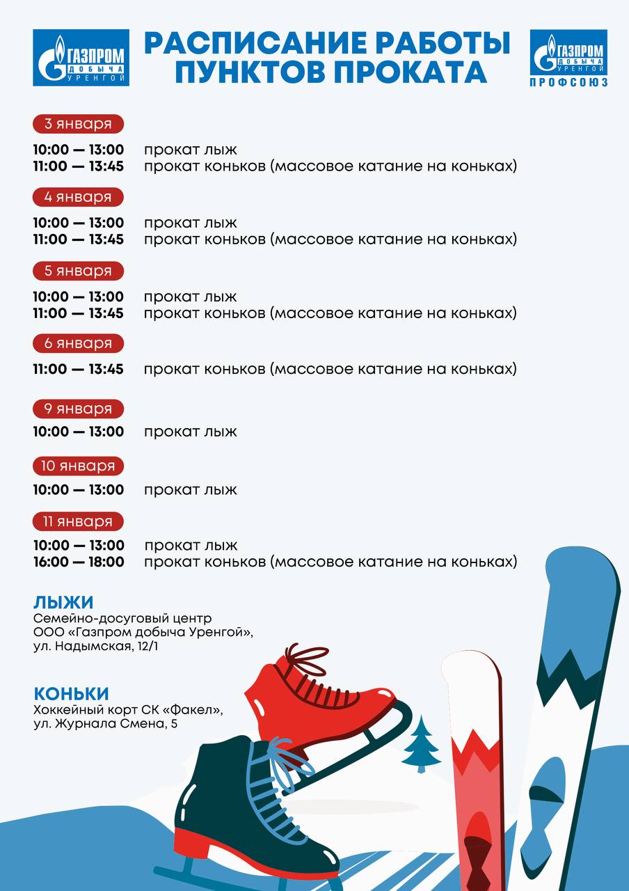 Расписание проката и работы тренажерного зала - на наших карточках. Сохраняйте себе и будьте бодрыми и здоровыми в 2026!