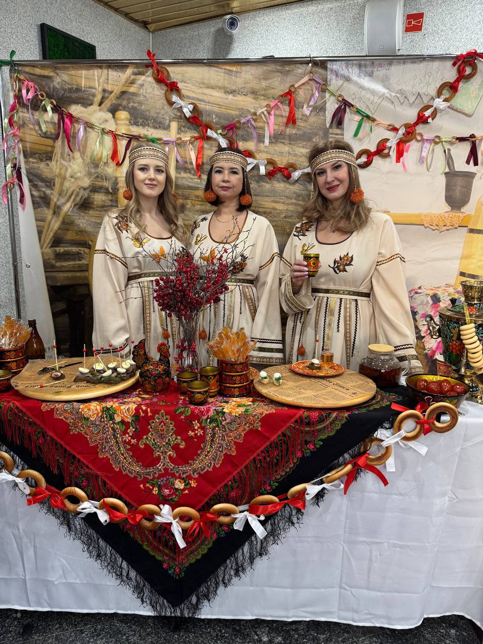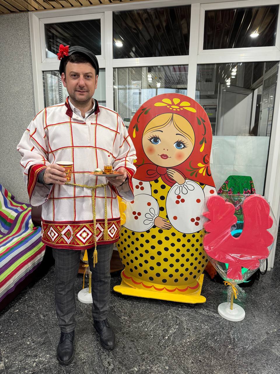 При поддержке профсоюзной организации в холле подразделения были созданы тематические зоны с мастер-классами по стрельбе из лука и плетению кос, вкусная станция с блинами и ароматным чаем, на входе коллег встречали караваем и народными танцами.