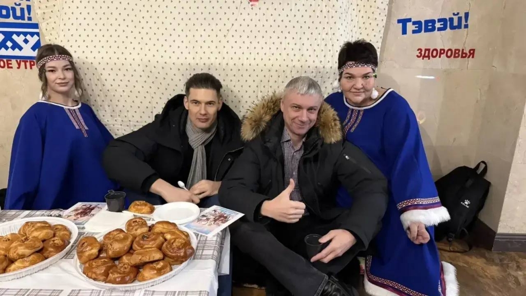 На столах гостей ждали северные угощения: строганина, оленина, пирожки с северными ягодами, горячий чай с морошкой и брусникой. Девушки филиала подготовили этот сюрприз с особым вниманием и теплотой, дополнив образ национальными орнаментами и традиционными атрибутами народов Севера.