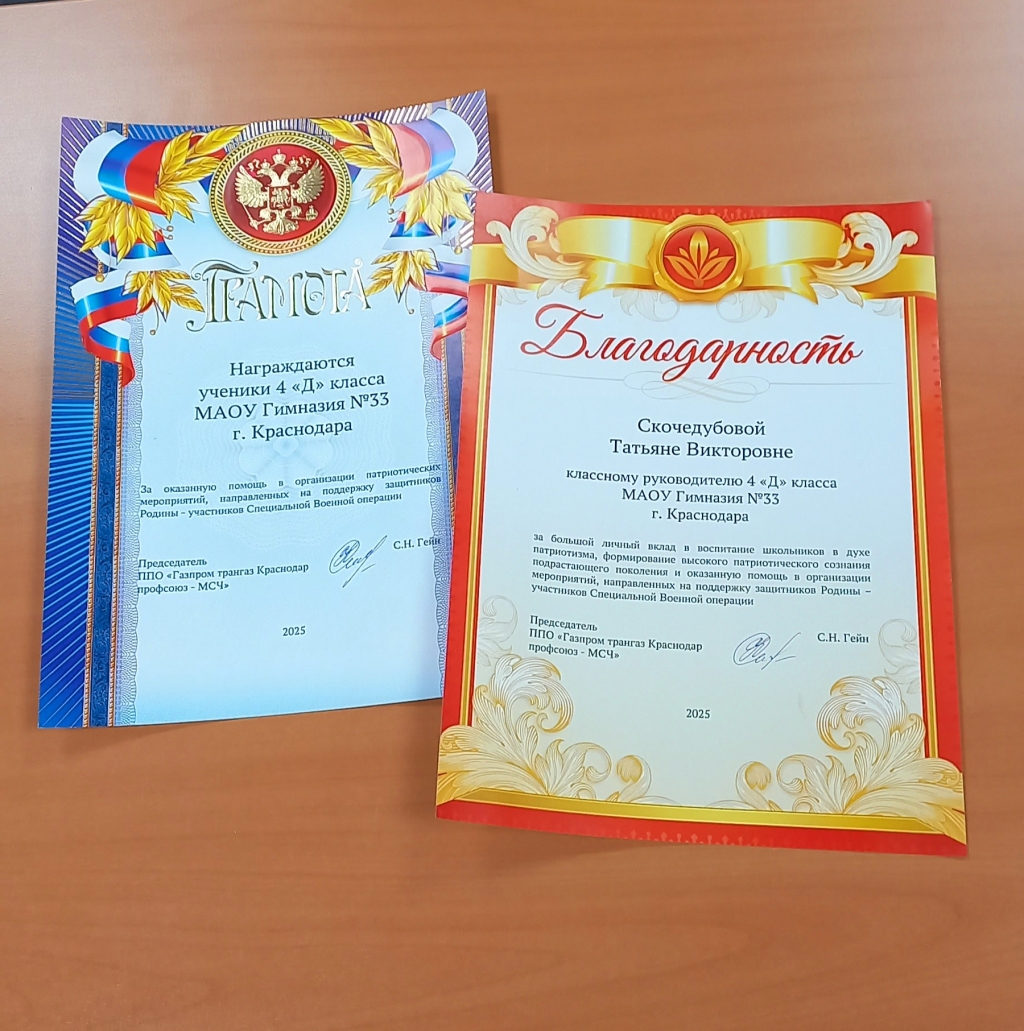 В знак признательности школьникам и классному руководителю Татьяне Скочедубовой от профсоюза филиала были подготовлены Почетная грамота и Благодарность