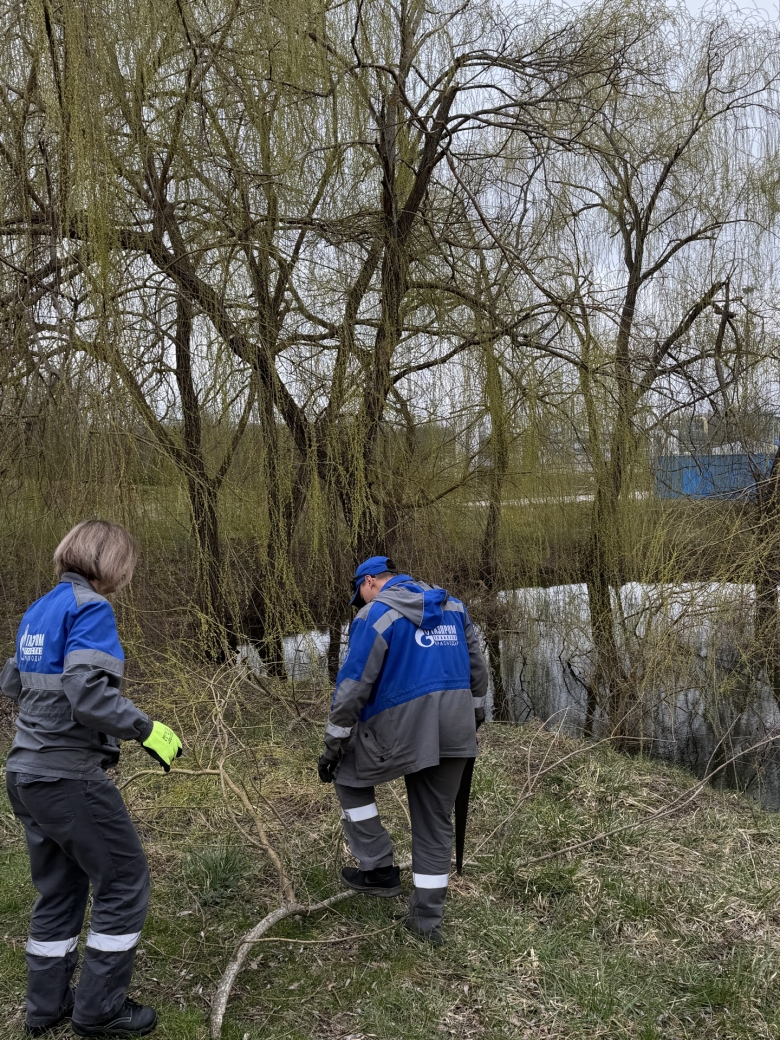 Особую активность проявили молодые специалисты станции: именно они взяли на себя непростую задачу - помогли вытащить сухие ветки прямо из самого пруда.