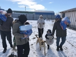 В воскресное утро активисты Управления материально-технического снабжения и комплектации (УМТСиК) приехали в центр помощи бездомным животным. С собой они привезли 100 килограммов сухого корма, 20 килограммов древесного наполнителя, новые лежанки для кошек и миски. Однако главное, что получили подопечные приюта, – это внимание и забота: сотрудники УМТСиК выгуляли собак, пообщались с животными и подарили им частичку тепла.