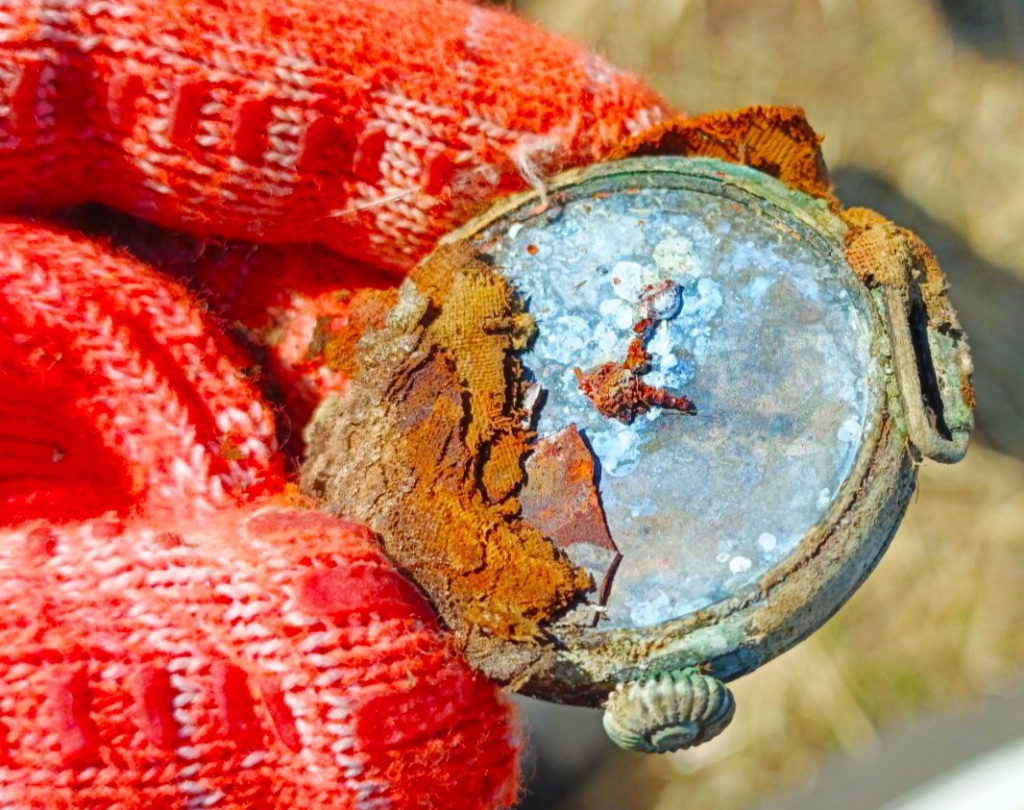 — Нами было найдено несколько мест захоронений бойцов, — рассказывают поисковики. — В одной из воронок были обнаружены останки трех солдат, один из которых предположительно офицер, поскольку рядом с ним находился командирский планшет, а в нем — набор карандашей, увеличительное стекло, офицерская линейка, часы, воинский устав и книжка красноармейца.